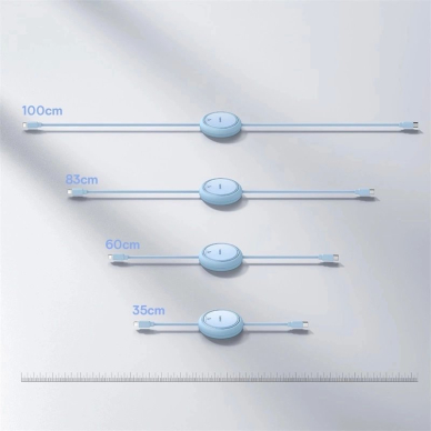 The retractable design of the Baseus Free2Pull cable is a great solution for those who value order and convenience. Enables smooth winding and unwinding of the cable - just pull one or both sides to reach the desired length. The cable has four length settings: 100 cm, 83 cm, 60 cm and 35 cm, which allows you to flexibly adapt it to various needs. The built-in dual turbine mechanism ensures smoothness for over 50,000 cycles, which means that the cable is not only practical, but also durable.