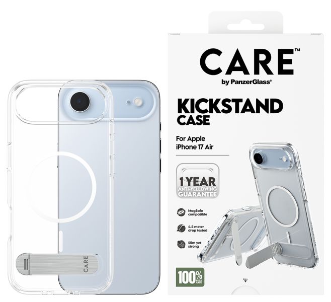 iPhone Air dėklas CARE by PanzerGlass Feature su kojelės funkcija MagSafe – skaidrus