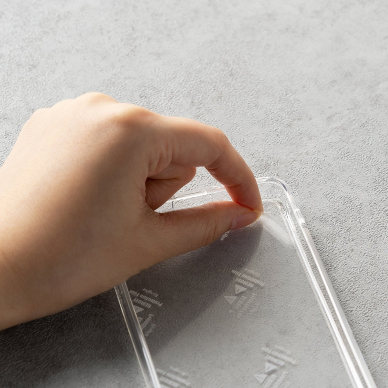 The cover consists of two parts connected to each other. The back panel made of PC material is stiff and is responsible for the stability of the entire cover. A flexible TPU frame covers the sides of the phone, absorbs impact energy and protects the screen and camera by sticking out over the edge of the device.